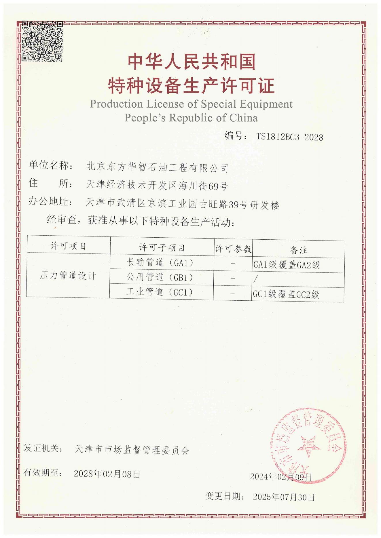 公司在天津滨海新区注册,总部位于天津市武清区京滨工业园,与母公司博思特合署办公。公司拥有化工、石化、医药行业(石油及化工产品储运)专业甲级、石油天然气(海洋石油)行业(管道输送、油气库)专业甲级、市政行业(城镇燃气工程)专业工程设计资质;设计范围内的工程总承包及项目管理和相关的技术服务资质;电子工程承包资质;特种设备设计许可证等。